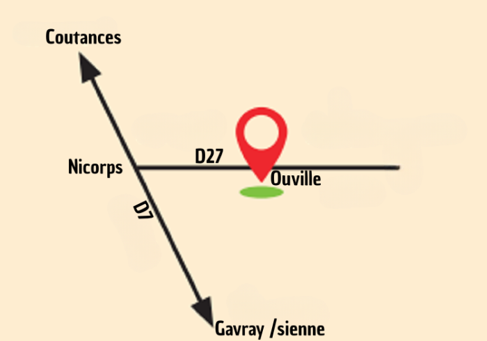 Sur la D27, dans le bourg d’Ouville (50210)