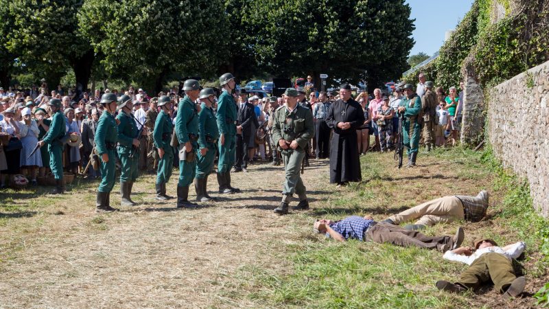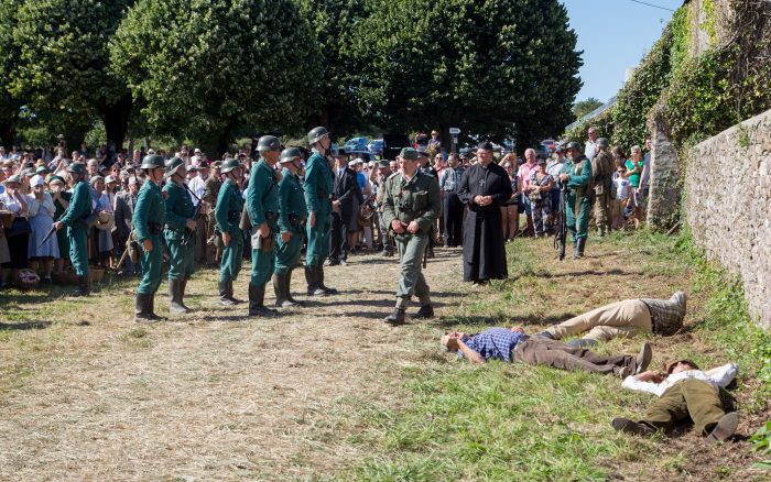 Les spectateurs sont arrivés directement au beau milieu de la scène, un village normand reconstitué pour l’occasion, nommé Sainte Agathe-du-Marais, 486 habitants, 118 feux, ce au moment de ces jours tourmentés à l’été 44, entre occupation et libération…